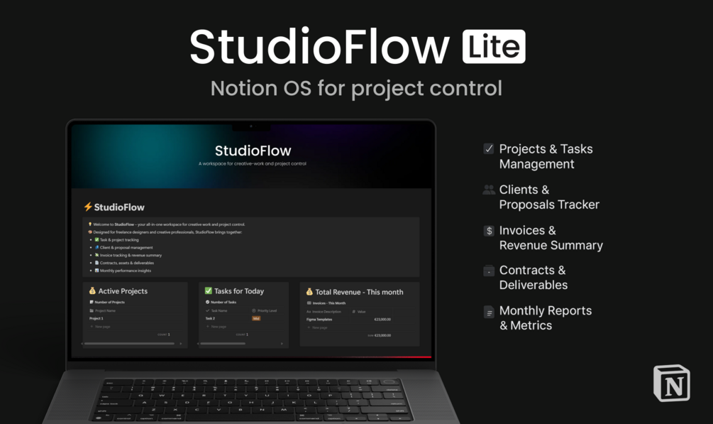 StudioFlow Lite β Free Notion OS for Freelance Designers & Project Managers